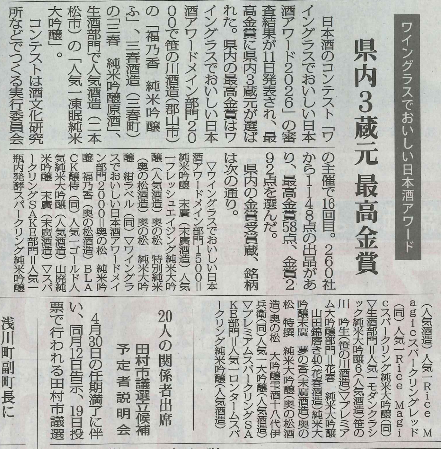 福島民報新聞(令和8年3月12日)